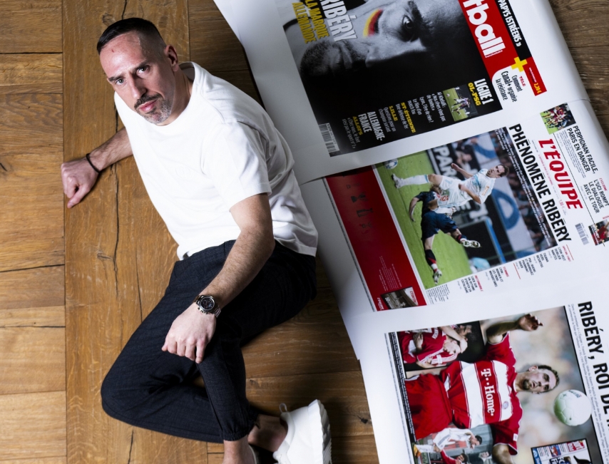 第二天,在慕尼黑森林邊緣的家中,這位五個孩子的父親接受了《隊報》的專訪。在他那間擺滿了2013年歐冠獎杯復制品、九座德甲冠軍獎牌和簽名球靴的豪華獎杯陳列室里,里貝里敞開心扉,暢談了許多。