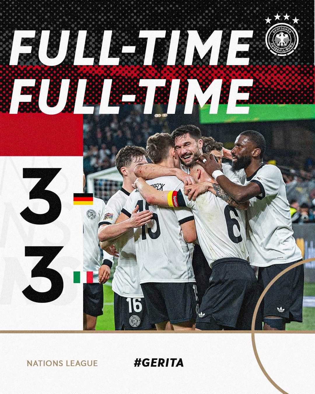 歐國(guó)聯(lián)八強(qiáng)戰(zhàn)次回合,德國(guó)3-3,總比分5-4戰(zhàn)勝意大利晉級(jí),基米希1射2傳,基恩梅開二度。