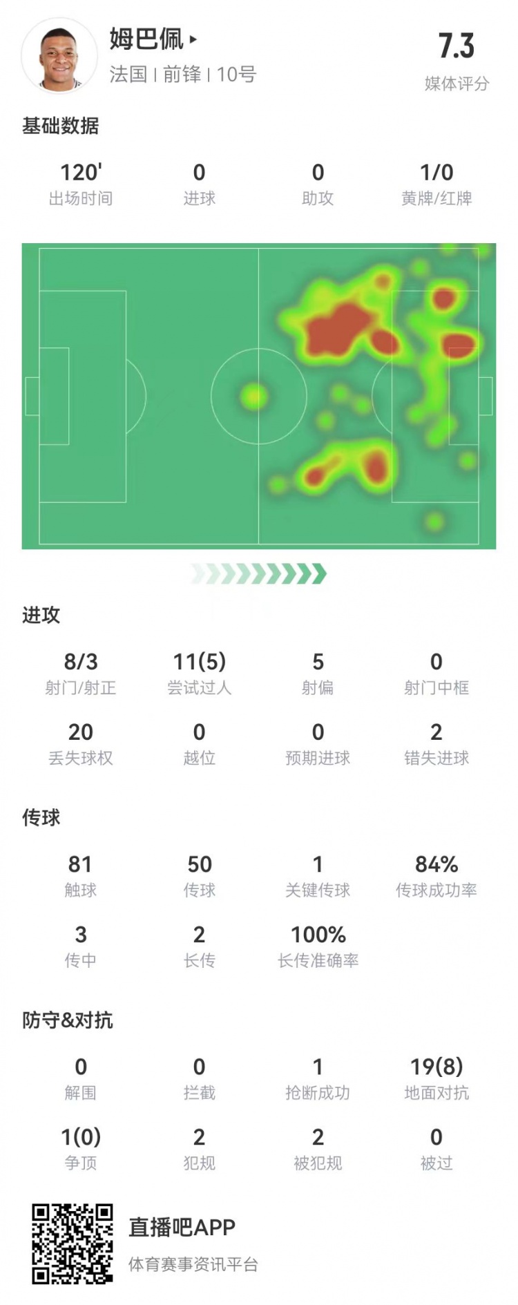 2025-03-24 09:28:06姆巴佩本場(chǎng)8射3正+2失良機(jī)+點(diǎn)射命中 20對(duì)抗8成功+20丟失球權(quán)