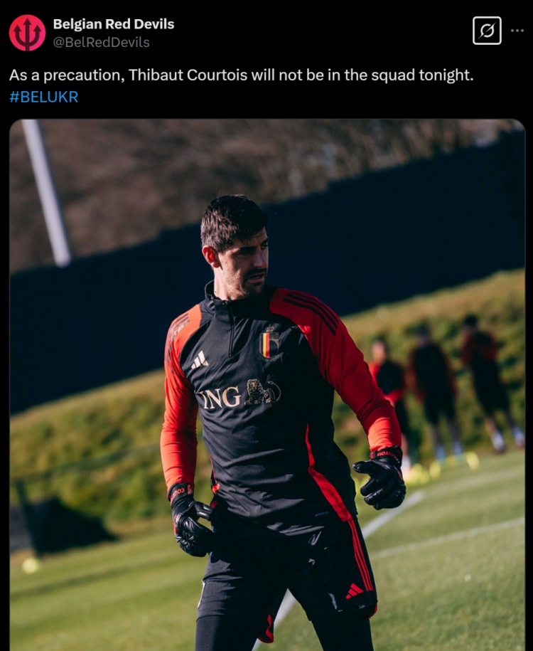 2025-03-24 09:30:29膝蓋出現(xiàn)傷情,比利時官方:作為預防措施,庫爾圖瓦不出戰(zhàn)烏克蘭