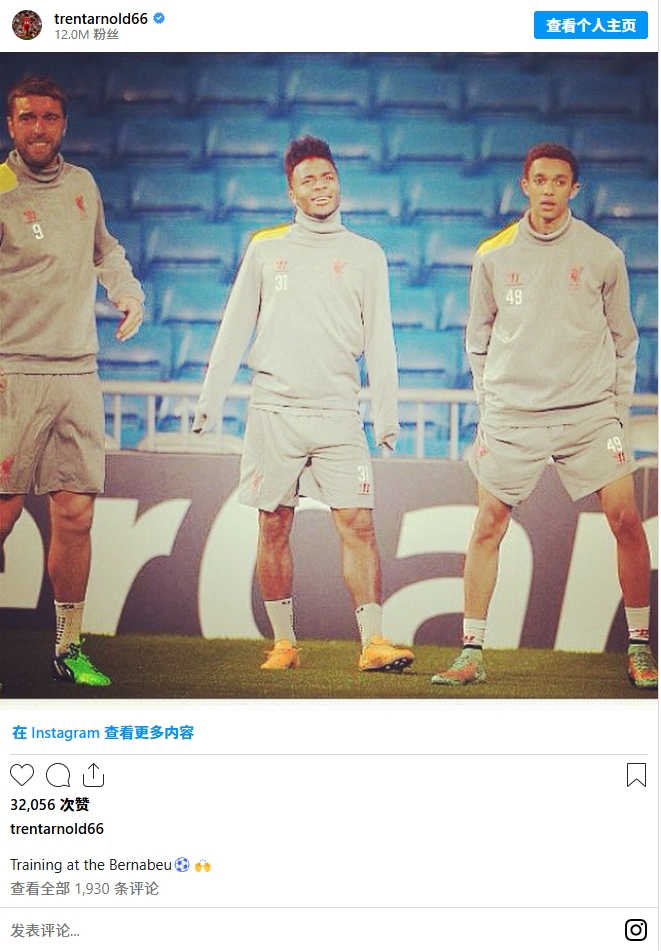 2025-03-26 20:26:31阿斯報挖出阿諾德10年前INS首個帖子:在伯納烏進行訓練