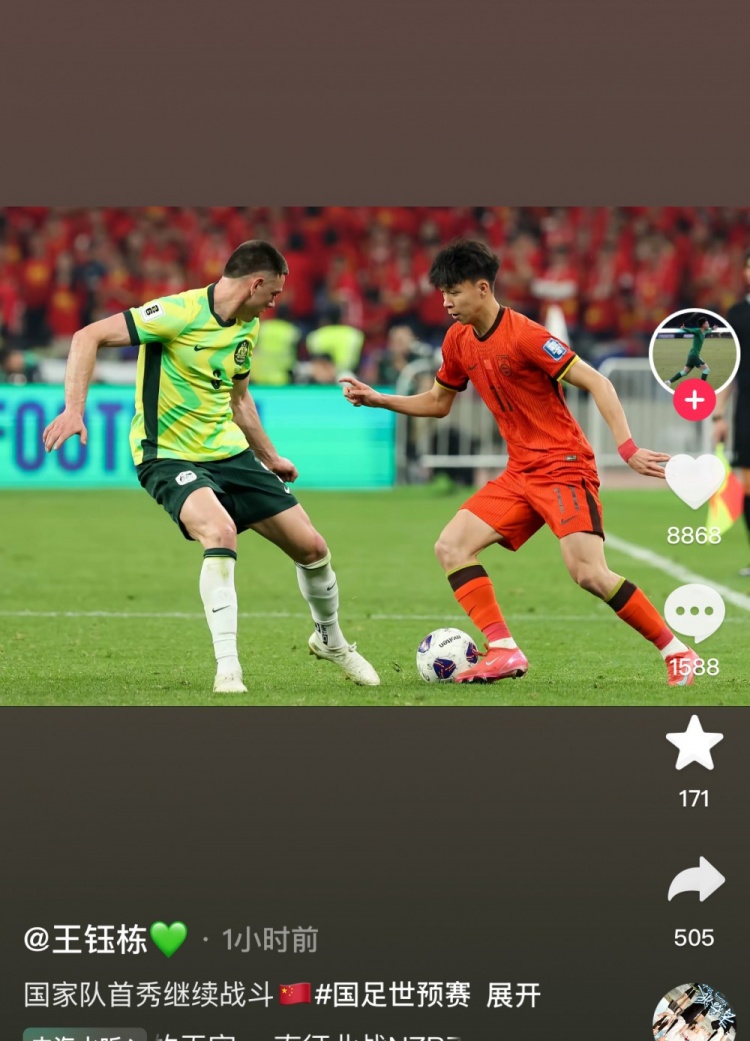 2025-03-26 20:40:50王鈺棟社媒曬國足首秀照,蒯紀(jì)聞留言:太愛你了兄弟