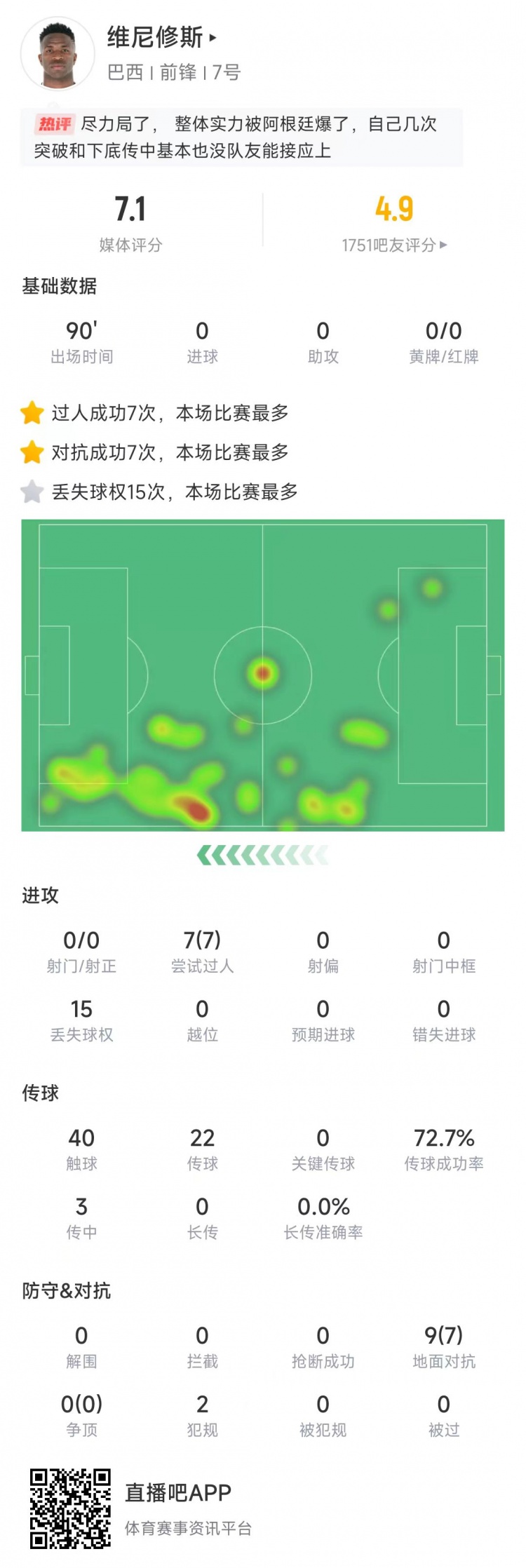 2025-03-26 20:43:48維尼修斯本場(chǎng)數(shù)據(jù):踢滿(mǎn)90分鐘0射門(mén),7次成功過(guò)人全場(chǎng)最多