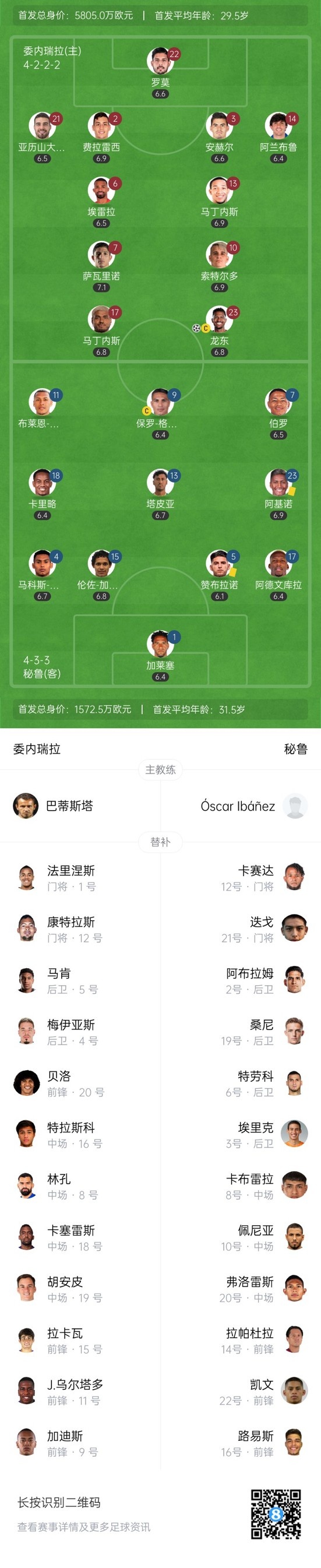 3月26日訊 北京時間3月26日08:00,世預賽南美區(qū)第14輪委內(nèi)瑞拉迎戰(zhàn)秘魯?shù)谋荣?,上半場龍東失單刀+點射破門首開記錄,布賴恩雷納破門無效,半場結(jié)束,委內(nèi)瑞拉1-0秘魯。