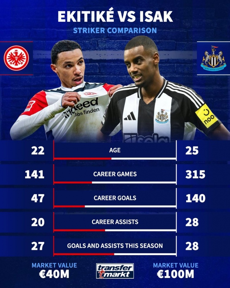 2025-03-28 19:52:53槍迷選誰(shuí)?22歲?;倏松韮r(jià)4千萬(wàn)&造27球,25歲伊薩克1億&造28球