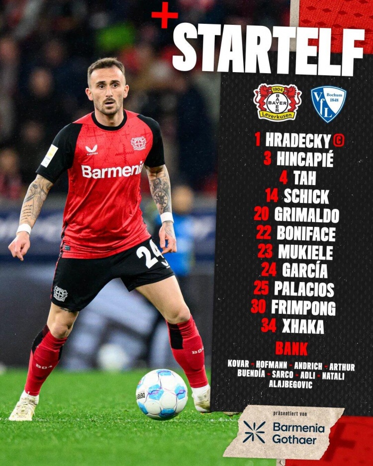 3月29日訊 北京時(shí)間3:30,德甲第27輪勒沃庫森vs波鴻。賽前,雙方公布雙方陣容。