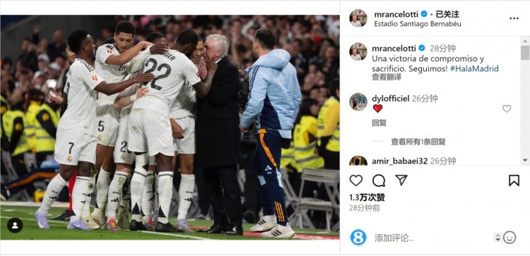 2025-03-30 20:12:50安切洛蒂社媒:這是奉獻和犧牲精神帶來的勝利,我們繼續(xù)前進!