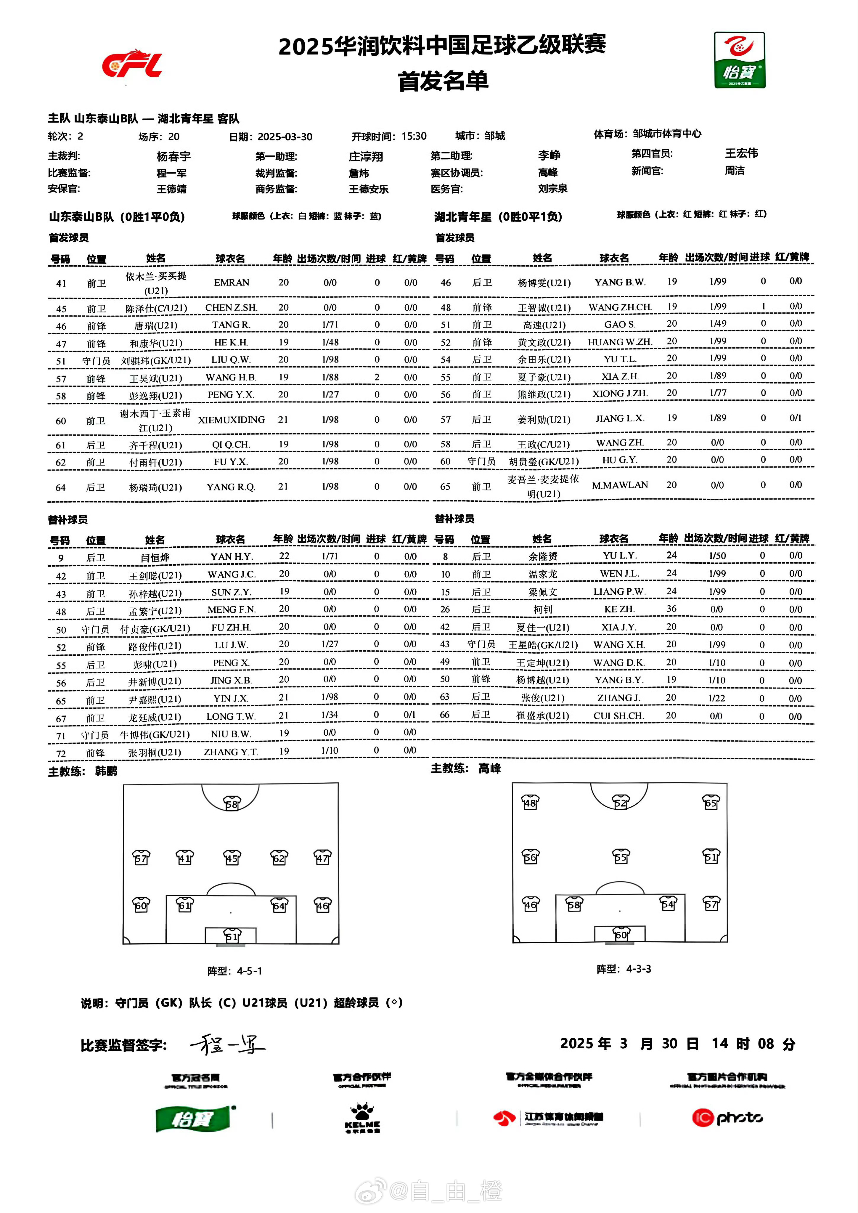 2025-03-30 20:14:39何時上一線隊?依木蘭出現(xiàn)在山東泰山B隊首發(fā),出戰(zhàn)中乙