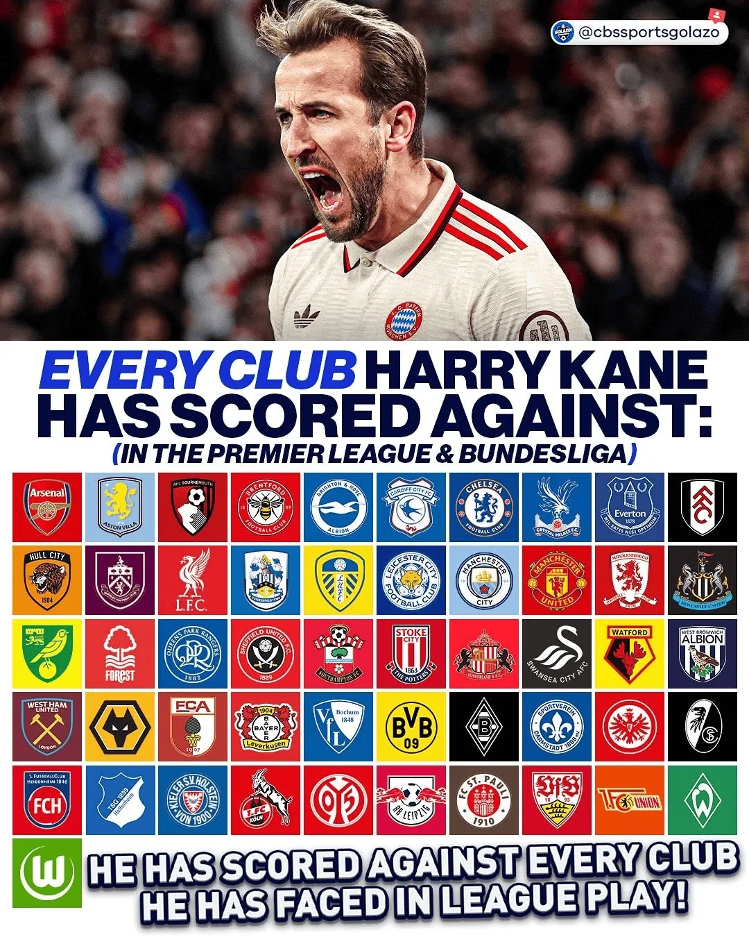 2025-03-30 20:24:09通殺,凱恩德甲、英超對陣51家俱樂部均完成破門