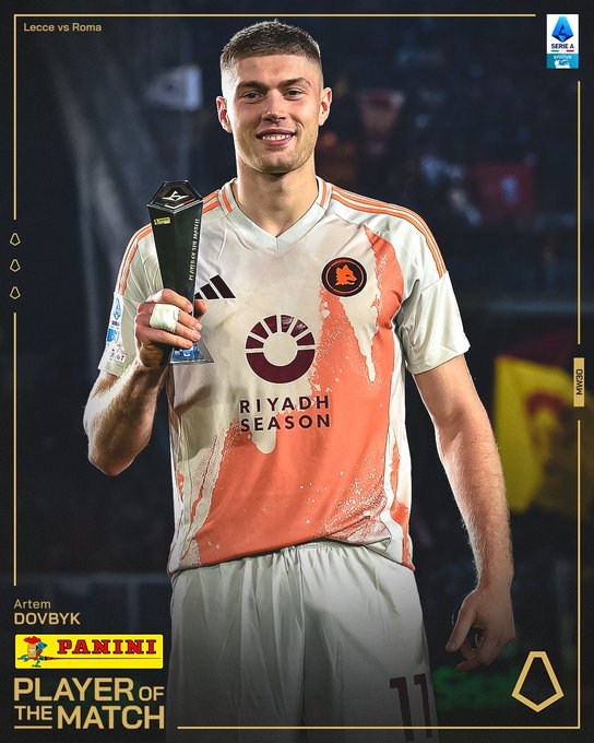 2025-03-30 20:25:22打入制勝進(jìn)球!多夫比克當(dāng)選羅馬1-0萊切一役全場最佳
