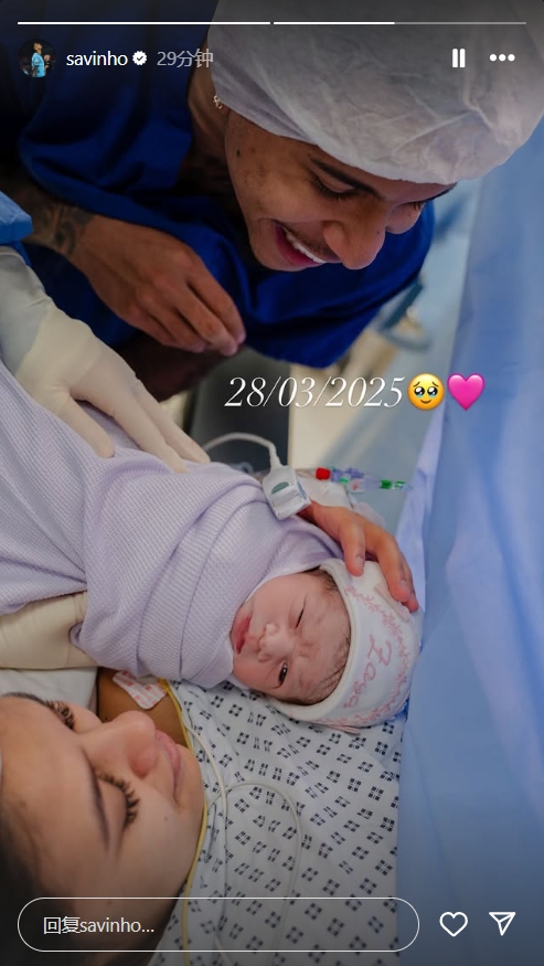 2025-03-30 20:26:35恭喜!薩維尼奧社媒曬照慶祝孩子出生