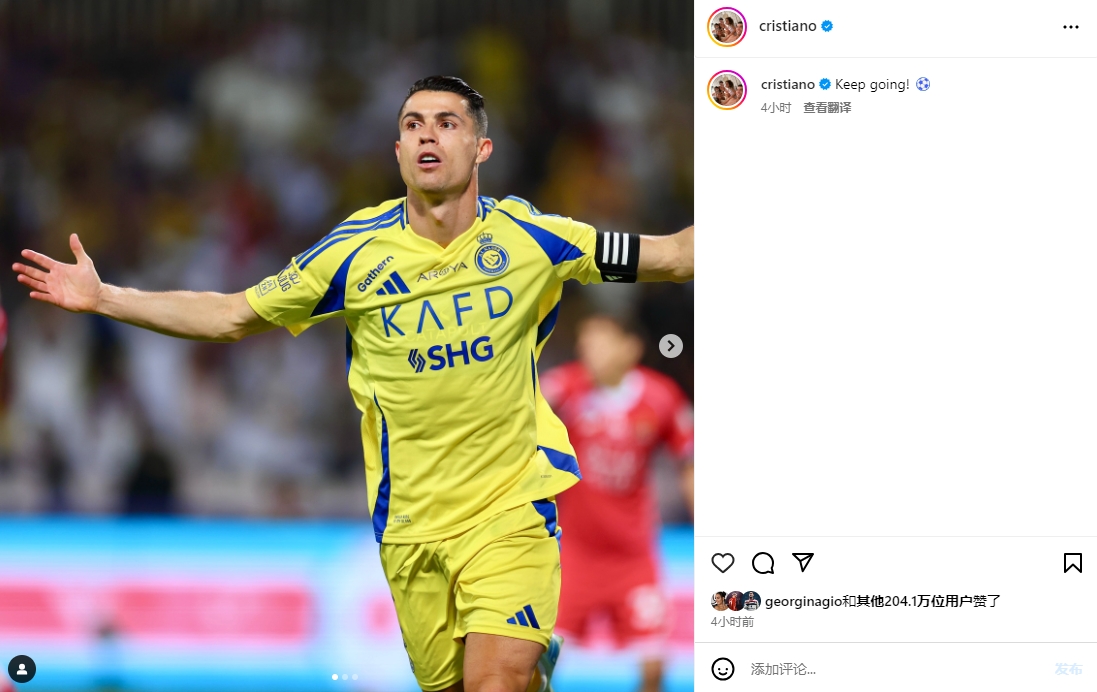 榮膺最佳球員!C羅社媒慶祝球隊(duì)勝利:繼續(xù)努力