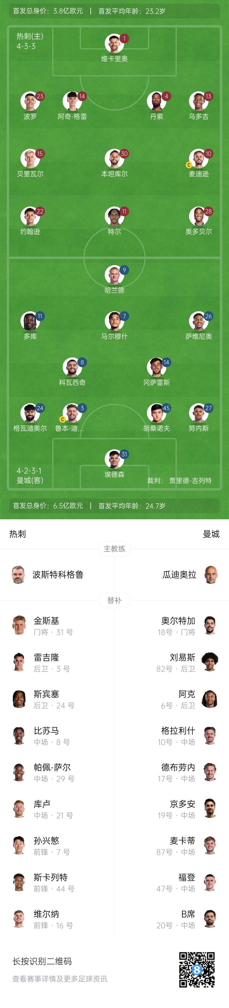 2025-02-27 08:11:24青春風暴!熱刺對曼城首發(fā)平均年齡僅23歲243天,隊史英超第2年輕
