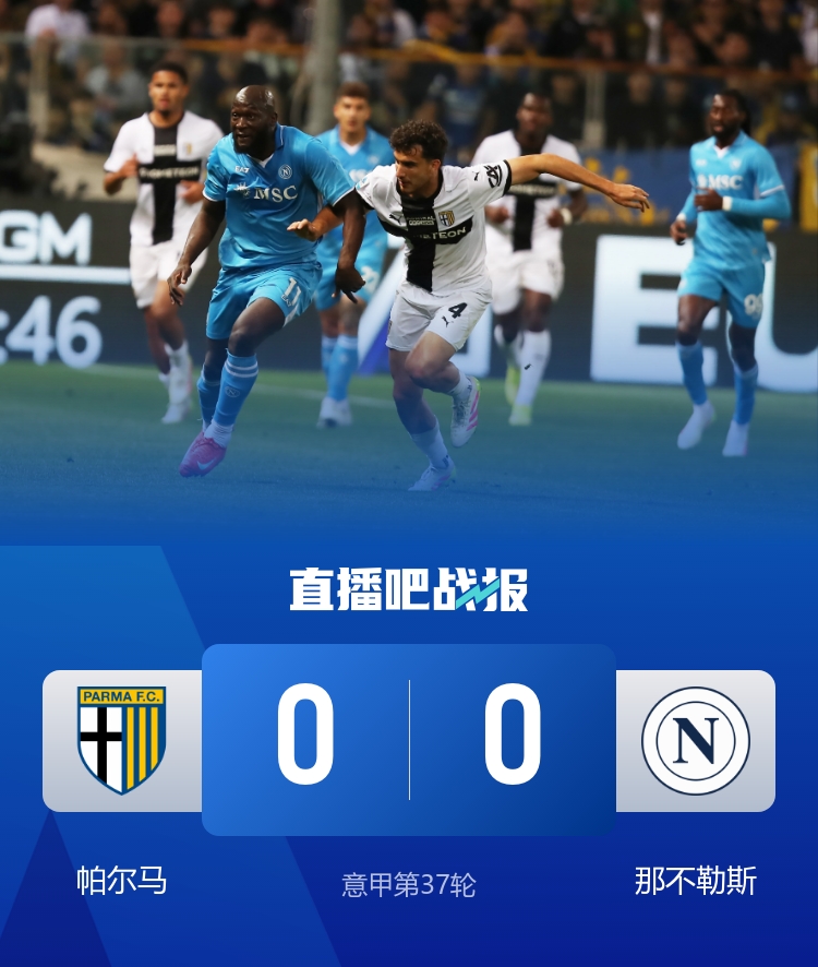 賽季意甲第37輪,那不勒斯客場(chǎng)0-0戰(zhàn)平帕爾馬,仍1分優(yōu)勢(shì)領(lǐng)先國(guó)米。