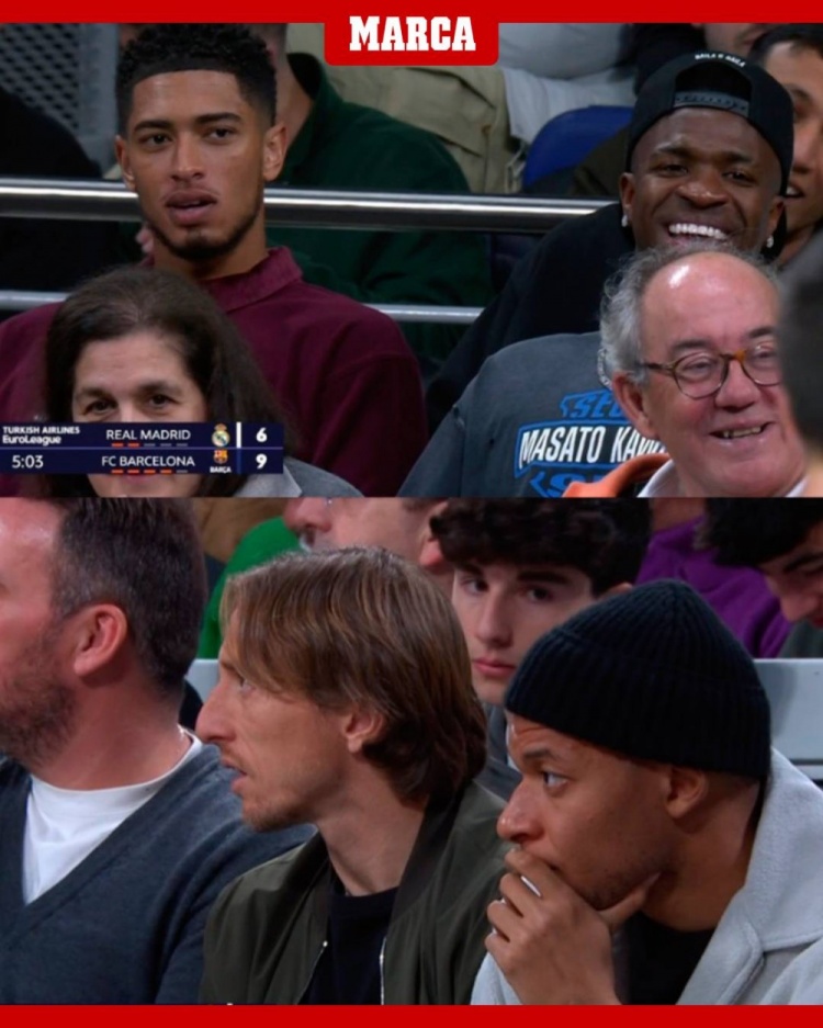 2025-02-28 08:03:58國王杯取勝后,姆巴佩&貝林&維尼修斯等現(xiàn)場觀看歐冠男籃國家德比