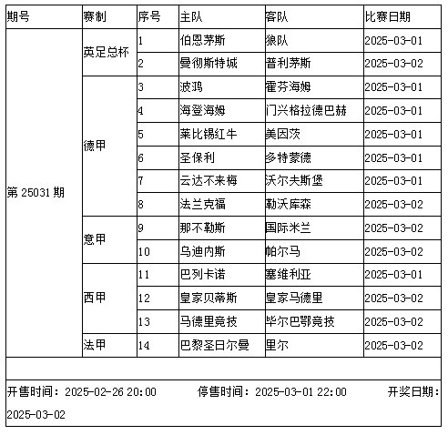 2025-02-28 16:06:52傳足勝負彩第25031期看點:曼城爭冠絕路 意甲天王山