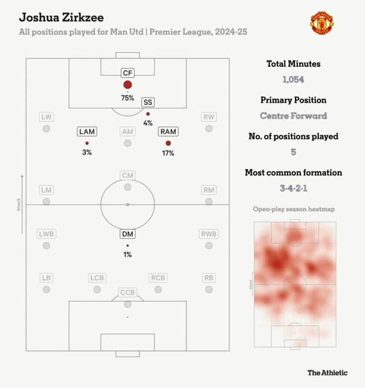 齊爾克澤在曼聯(lián)出場位置分布圖