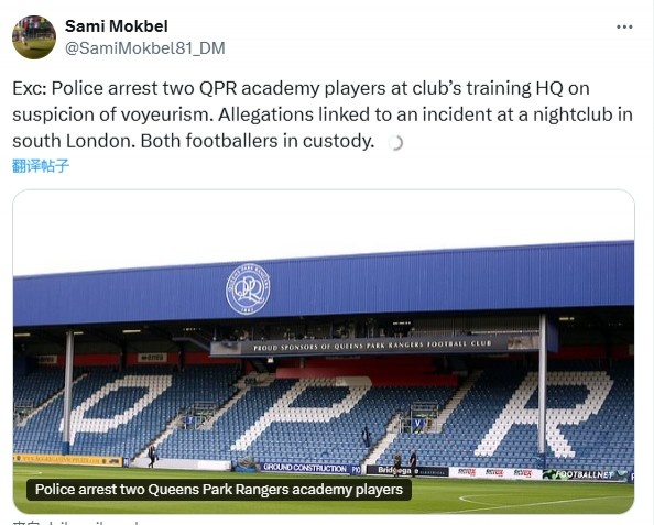 2025-02-28 16:07:23郵報:英冠QPR兩名球員訓(xùn)練時被警方帶走,涉嫌偷窺罪