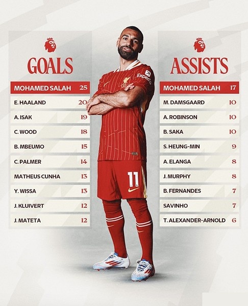 薩拉赫領跑英超射手榜和助攻榜,斯洛特不僅將帶來聯(lián)賽冠軍,還有可能為利物浦帶來一位金球獎得主。