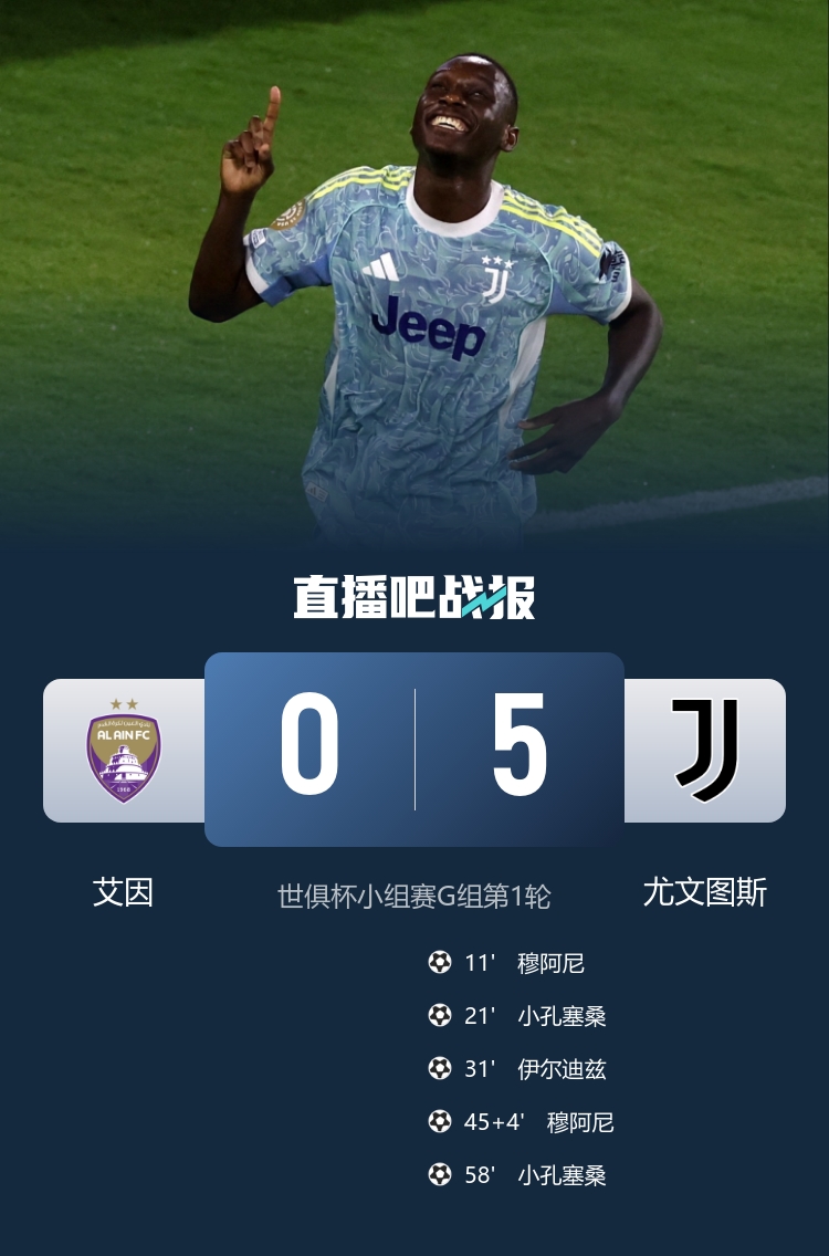 2025-06-19 18:06:54第三個慘案來了!尤文半場4球爆捶亞洲隊艾因,穆阿尼單刀再建功