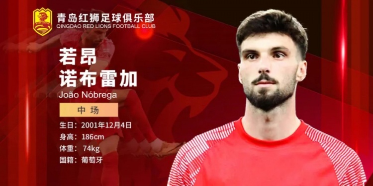 為更好迎接新賽季,經(jīng)雙方友好協(xié)商并達(dá)成一致,葡萄牙足球運(yùn)動(dòng)員若昂·諾布雷加(JOAO MIGUEL VIEIRA NOBREGA)正式加盟青島紅獅足球俱樂部。