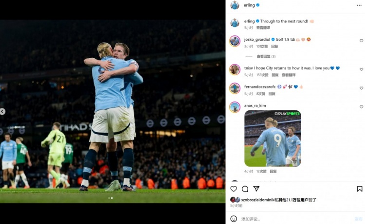 2025-03-02 18:17:09布丁連線再現(xiàn),哈蘭德社媒曬與德布勞內(nèi)擁抱合影:晉級(jí)下一輪!