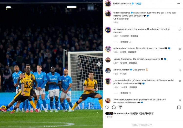 2025-03-02 18:17:29迪馬爾科曬任意球破門瞬間:很遺憾未能取勝,但我們在團結(jié)拼搏