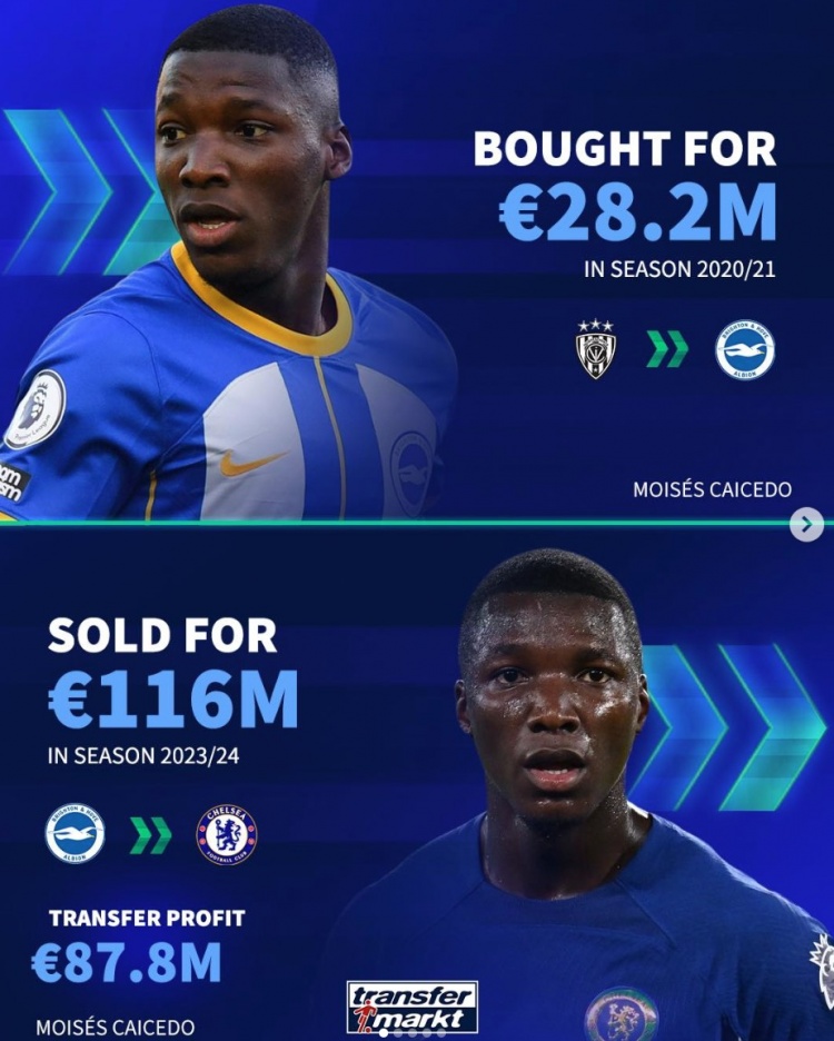 德轉(zhuǎn)列布萊頓近年5筆低買高賣,凈賺超2億歐:凱塞多&庫(kù)庫(kù)在列