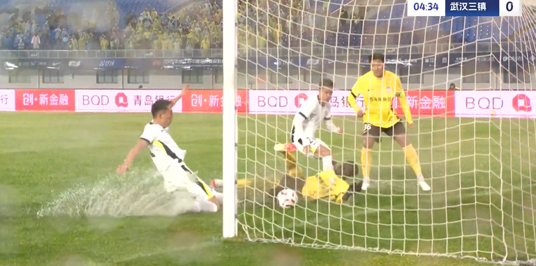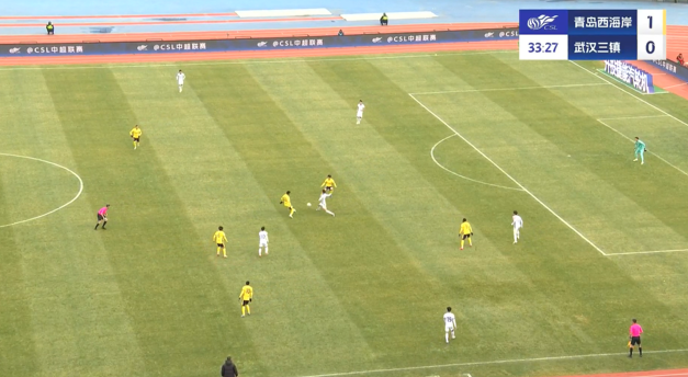 上半場補時3分鐘,青島西海岸1-0武漢三鎮(zhèn)。