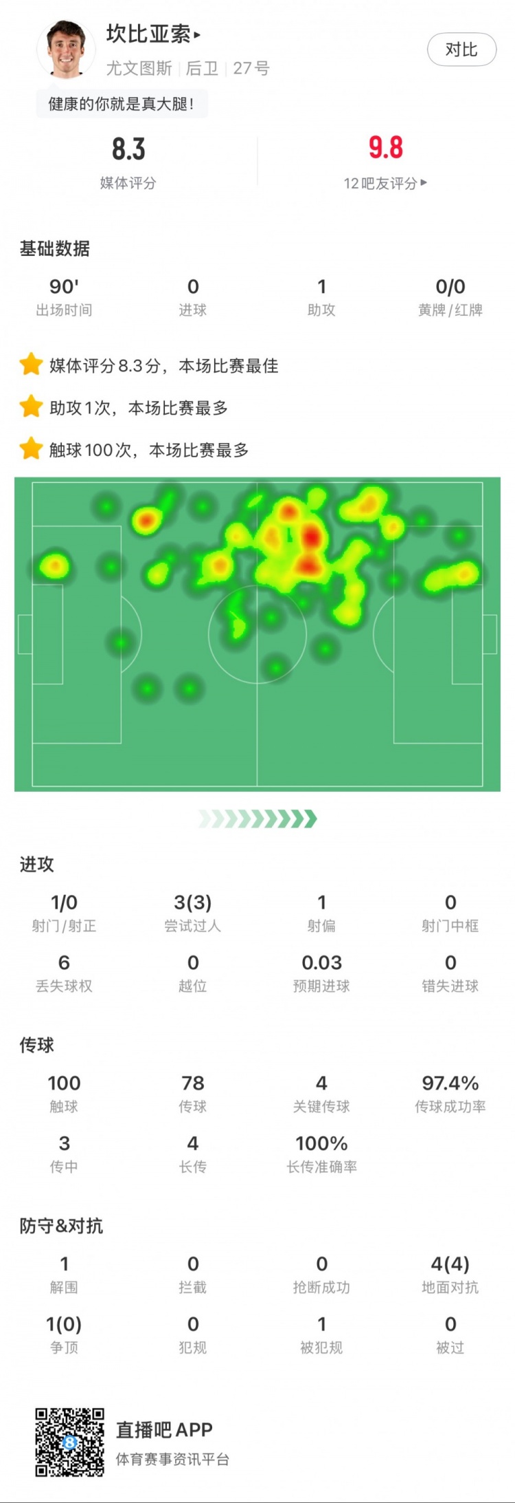 2025-03-04 09:13:06坎比亞索本場(chǎng)數(shù)據(jù):1次助攻,4次關(guān)鍵傳球,3次成功過(guò)人