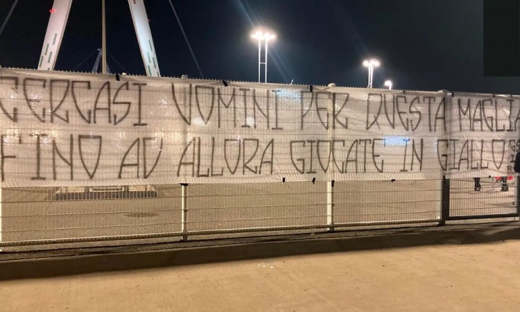 尤文球迷組織先是在球場集結,隨后前往球隊賽前集訓地表達不滿。球迷在球場外掛出兩條批評性橫幅,一條強調(diào)“你們所有人都只是過客,而我們是足球的歷史”,另一條則直接批評球員“為這件球衣尋找真男人”。