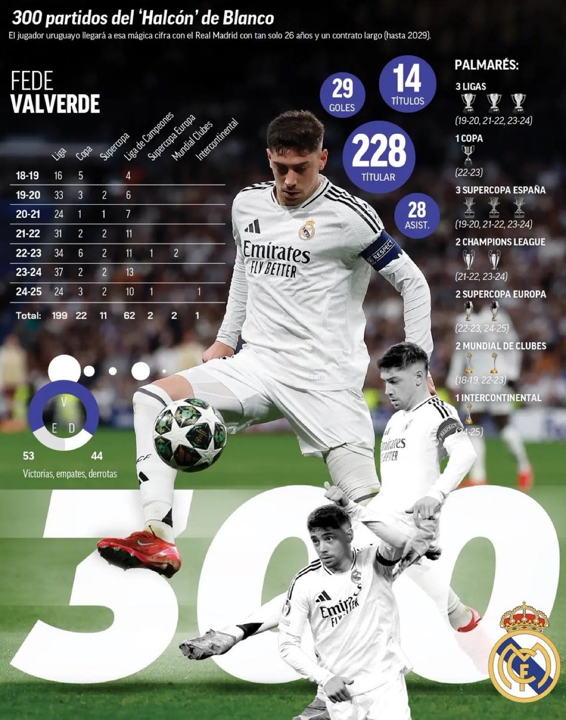 2025-03-05 03:47:28巴爾韋德達成皇馬生涯300場里程碑,同期29球28助攻+14冠軍