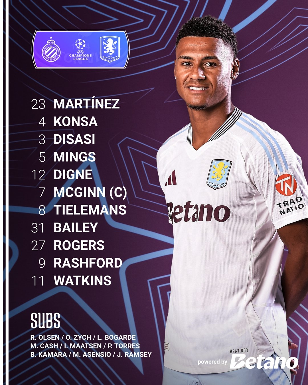 2025-03-05 03:48:35拉師傅出戰(zhàn)歐冠淘汰賽!維拉vs布魯日:拉什福德、沃特金斯先發(fā)