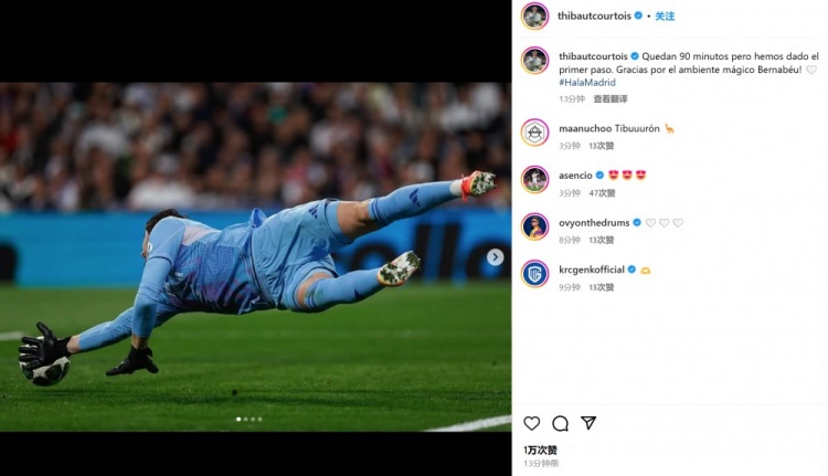 2025-03-05 11:23:49庫爾圖瓦社媒:還剩90分鐘但已邁出第一步,感謝伯納烏的神奇氛圍