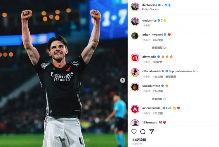 厄德高在本場(chǎng)比賽2射1傳,賴斯也送出1次助攻,兩人都通過(guò)社媒曬出自己的慶祝照,并簡(jiǎn)單配文“7”。