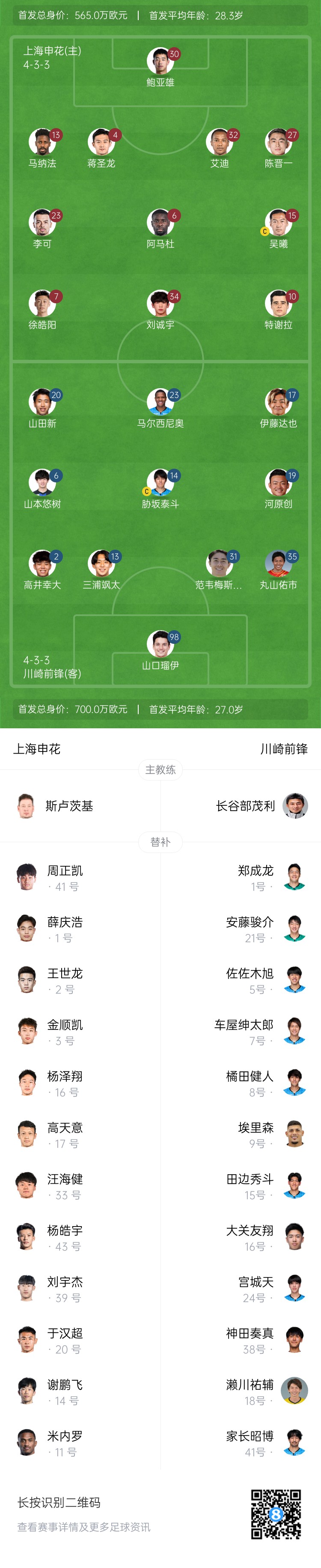 2025-03-05 20:48:11亞冠精英聯(lián)賽1/8決賽首回合 上海申花vs川崎前鋒首發(fā)名單 ???