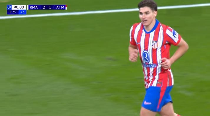 比賽第92分鐘,阿爾瓦雷斯還在全力逼搶皇馬后防,差點(diǎn)幫助球隊(duì)拼得一個(gè)角球機(jī)會(huì)。