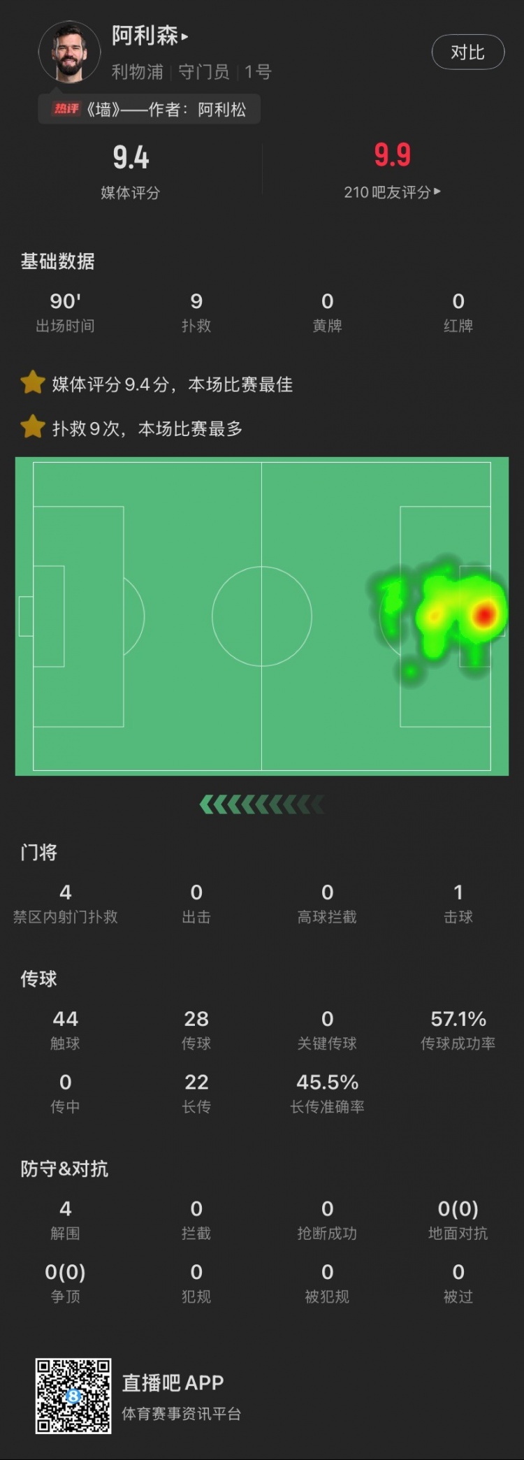 2025-03-06 10:42:04頭號(hào)功臣!阿利森本場(chǎng):9次撲救,被射27腳0丟球,9.4分全場(chǎng)最高
