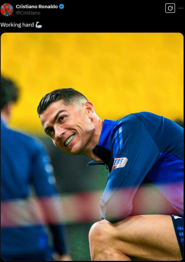2025-03-06 10:42:09笑容洋溢心情不錯,C羅社媒曬訓練照,配文:努力工作!