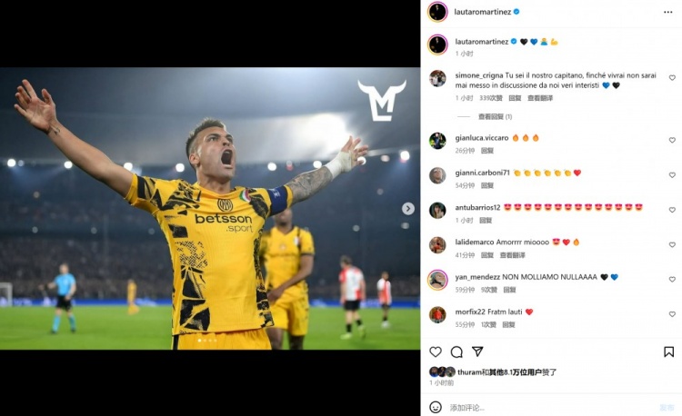 2025-03-06 10:43:36鋒線雙星雙雙破門,勞塔羅&小圖拉姆社媒曬怒吼慶祝照