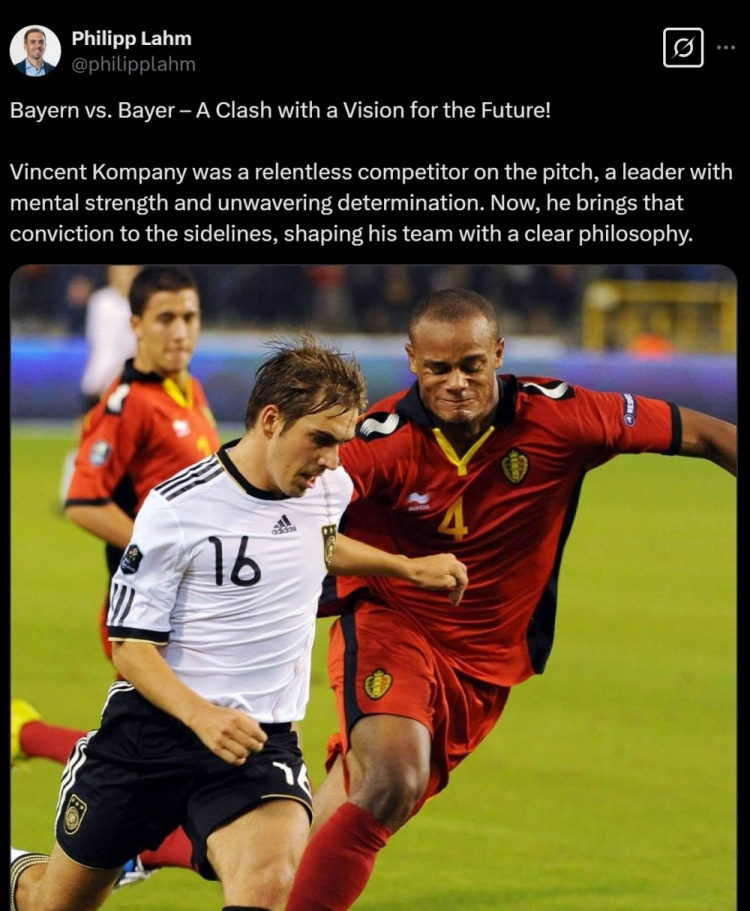 拉姆寫道:拜仁對陣?yán)瘴謳焐@是一場未來愿景之間的較量!在球場上,孔帕尼是一位不屈不撓的斗士,一位擁有強(qiáng)大精神力量和堅定決心的領(lǐng)袖?,F(xiàn)在,他將這種信念帶到了教練席,正在用清晰的理念塑造他的球隊。