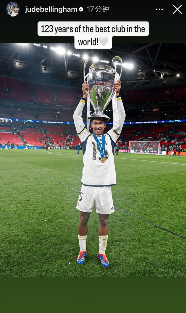2025-03-07 03:19:43貝林曬高舉歐冠獎(jiǎng)杯照片祝賀皇馬:世界上最好的球隊(duì)123歲了!
