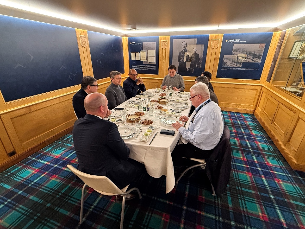 會面結(jié)束后,周云杰先生邀請迪亞洛主席一同共進(jìn)午餐。一同出席午宴的重要成員還有歐塞爾市長馬勞、斯特拉斯堡主席馬克-凱勒和足協(xié)領(lǐng)導(dǎo)小組成員帕朗。本次午宴特別邀請了波爾多全聚德的主廚操刀制作烤鴨,希望各位客人可以在法國品嘗到地道的中國美食和文化。