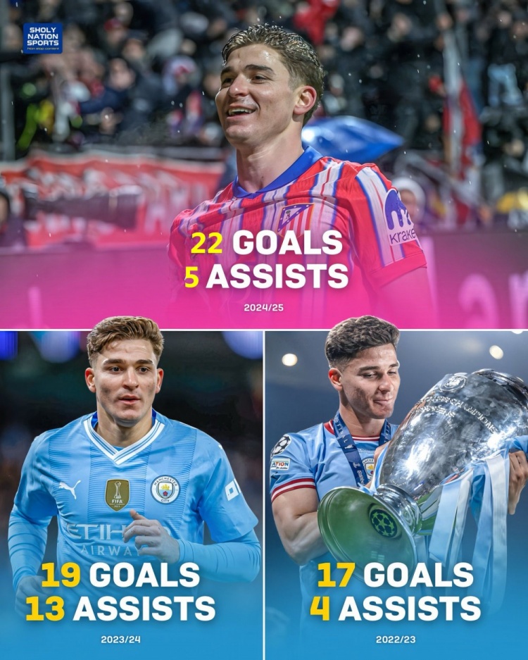 2024年10月7日,馬德里競技做客挑戰(zhàn)皇家社會,阿爾瓦雷斯開場50秒便完成閃擊破門,此役成為其西甲生涯的分水嶺。在賽季初的10場比賽中,阿爾瓦雷斯只有2球入賬,鋪天蓋地的“水貨”罵名幾乎淹沒了他的社交媒體賬號。以造訪阿諾埃塔為起點,小蜘蛛開啟了一輪31場20球的收割之旅,馬競以一波12連勝進入西甲爭冠集團,老東家曼城卻在同時期輸?shù)?4場比賽,昔日的冠軍圣體蛻進階為玄學(xué)大師。