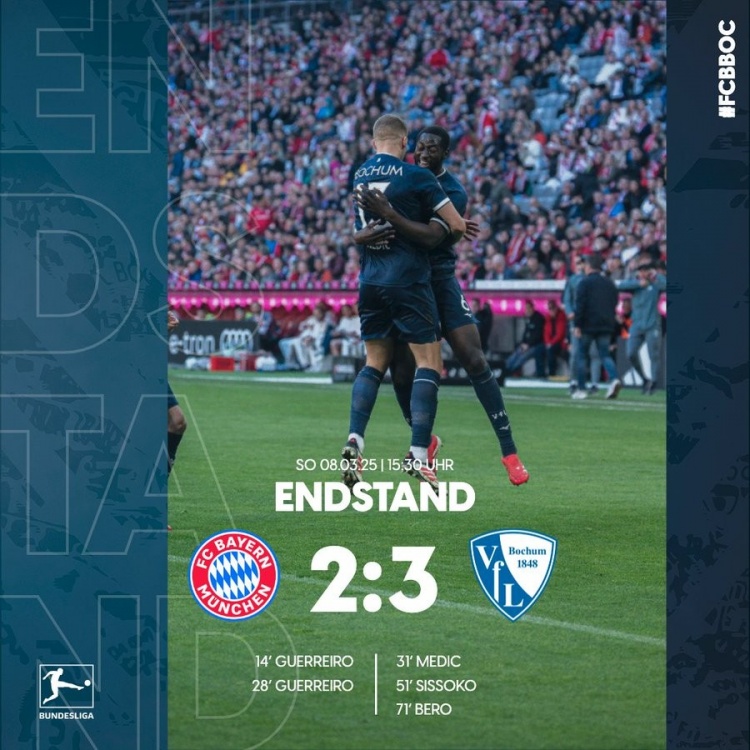2025-03-09 04:12:14在德甲落后拜仁2球但最終逆轉獲勝!波鴻是歷史第4隊