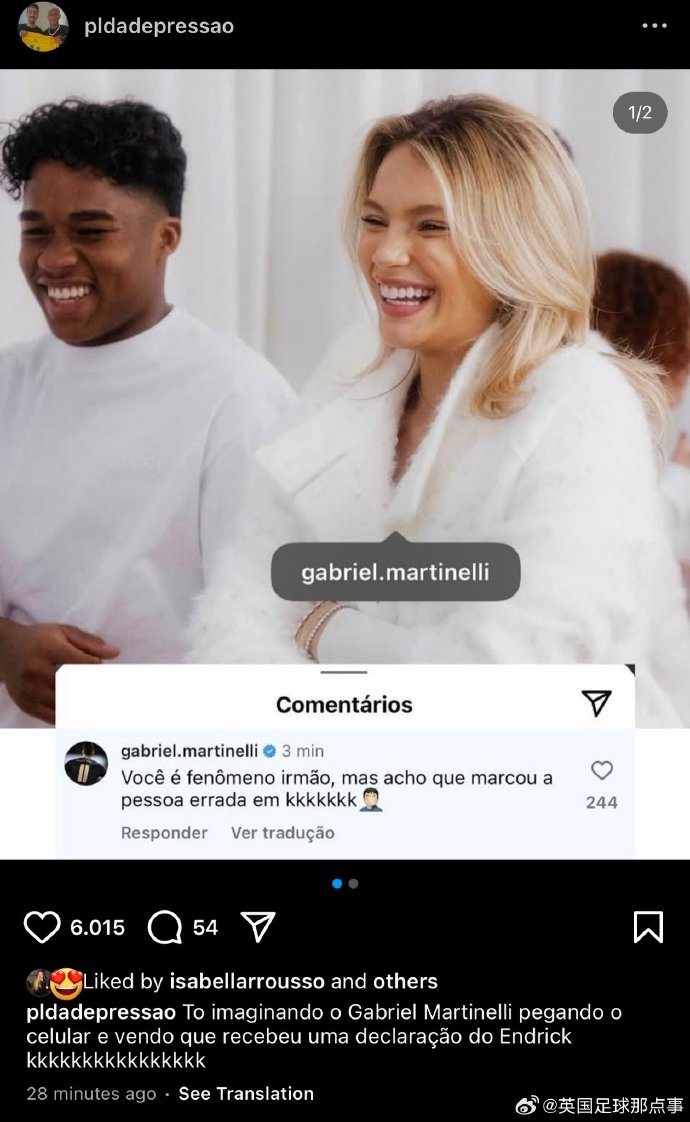 2025-03-09 12:24:10【不小心】恩德里克在社媒曬妻子,卻標注成了阿森納的馬丁內(nèi)利