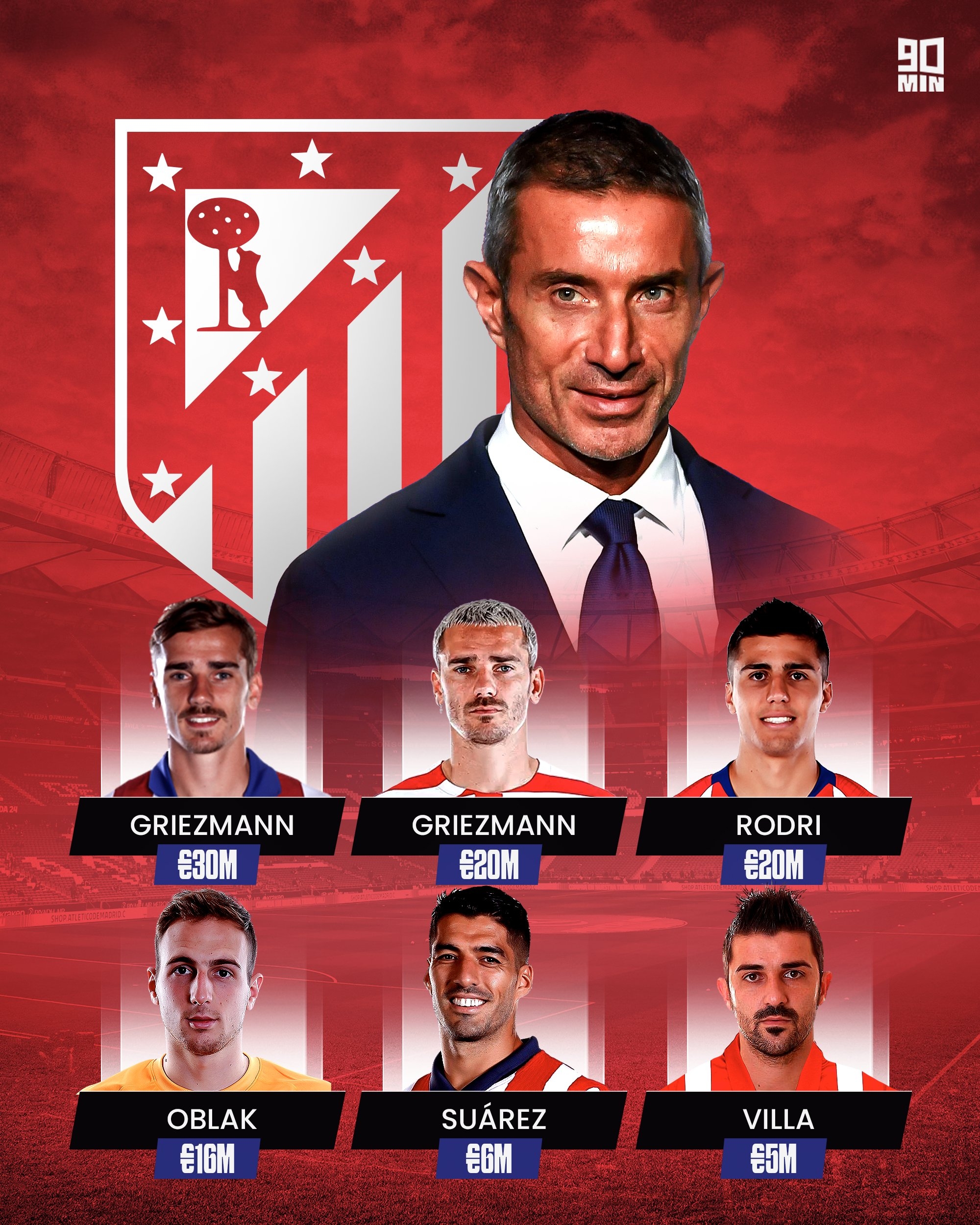 格列茲曼 - 2014年以2480萬英鎊從皇家社會(huì)簽下。2019年以1.03億英鎊賣給巴塞羅那。2021年以1650萬英鎊回購。
