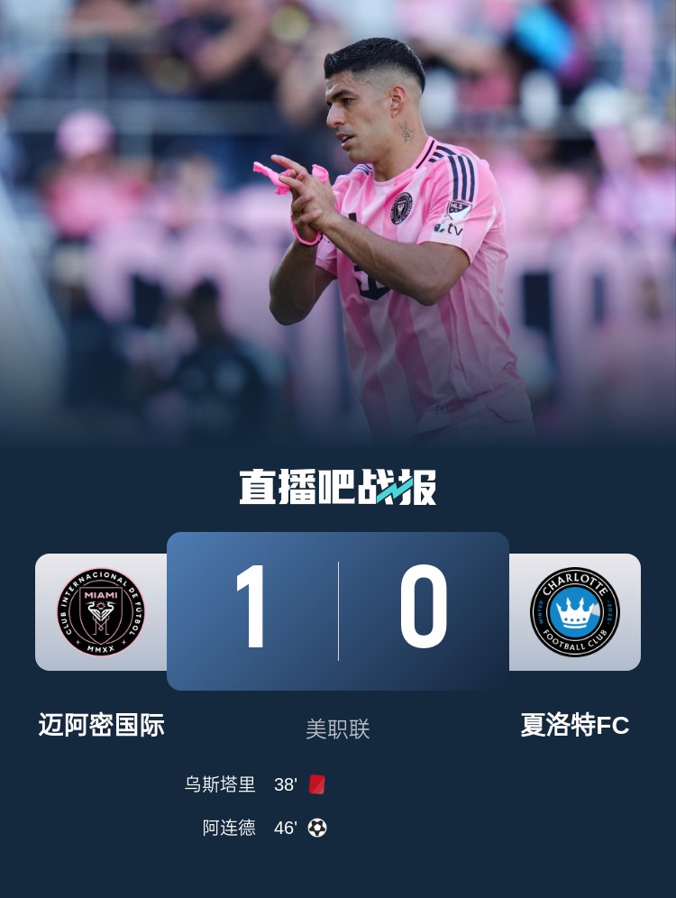 美職聯(lián)本輪邁阿密國(guó)際1-0擊敗夏洛特FC,梅西替補(bǔ)未出場(chǎng),阿連德破門,蘇亞雷斯助攻。